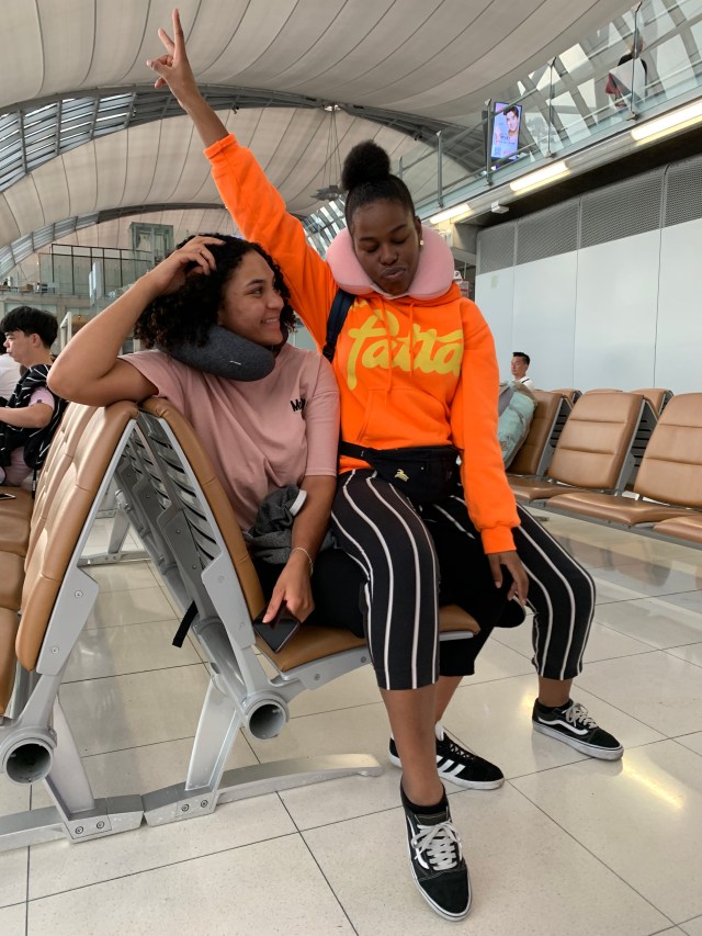 Spending the night at Singapore airport was an adventure to say to the least. I can’t even write about it without laughing because it was so silly. At first we went looking for a nice lounge to ‘take a nap’. By now it was 01:30. We got to a nice lounge and of course all the good sleeping spots where taken. So instead of looking for another lounge we had a foot massage. (makes sense) By the time the foot massage was done everyone was too tired to go to another lounge so Mo had this ‘brilliant’ idea to sleep in the movie Theatre. Yes, at Singapore Airport they have a free cinema and it’s playing movies 24/7. Anyway, we actually slept a solid 4 hours in the cinema. I mean at the aiport they have lounges everywhere with actual sleeping chairs, but you don’t use them, no. You sleep in the movie theatre, duh. By the time I got up my whole body was stiff. The only thing that could make that go away was the Krispy Kreme donut I had for breakfast :). When derest was still K.O in the theatre I strolled around the airport. I found a water lily garden. In the garden it was actually warm and there was a couch, so guess what happend next… I fell asleep in the garden :).