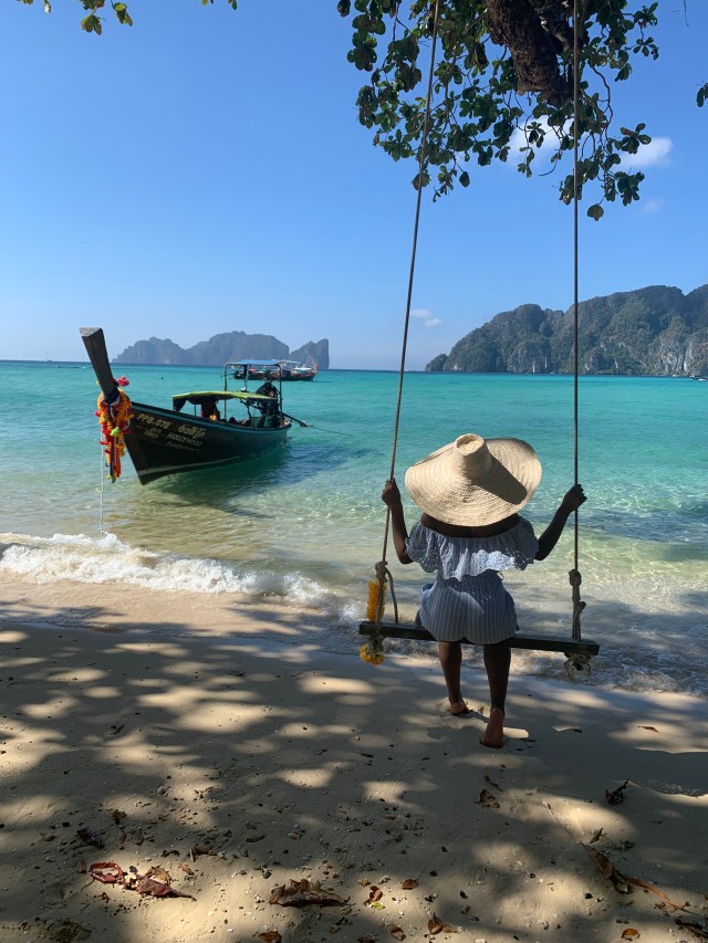 Today we hired a long tail boat to see the best parts of the island. We got up before sunrise to witness it on the ocean. Honestly tho, this morning when the alarm went off at 05:00 I felt like a crazy person. We went out yesterday night and this morning everyone regretted that. The sunrise was worth it tho, it was breathtaking and now I’m sitting on a private beach writing my post. Sitting near the water always helps me put my mind at ease (as a 23 year old student I can shamelessly say, it never is) Like I’ve said before this was a really early morning so since my mind is at ease imma try to take a quick nap in de sun. Speaking of the sun… I tanned so much, in four months I’m gonna go home looking like a Oreo cookie.