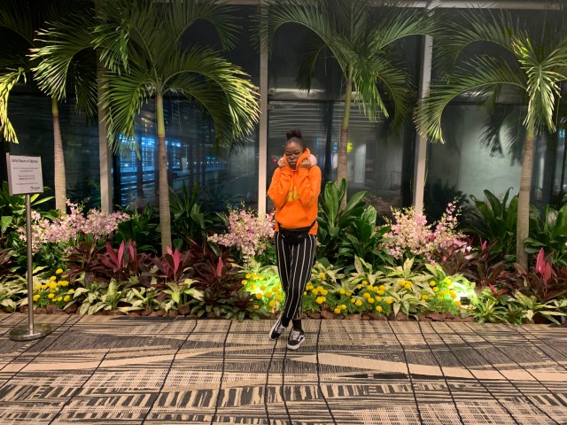 Spending the night at Singapore airport was an adventure to say to the least. I can’t even write about it without laughing because it was so silly. At first we went looking for a nice lounge to ‘take a nap’. By now it was 01:30. We got to a nice lounge and of course all the good sleeping spots where taken. So instead of looking for another lounge we had a foot massage. (makes sense) By the time the foot massage was done everyone was too tired to go to another lounge so Mo had this ‘brilliant’ idea to sleep in the movie Theatre. Yes, at Singapore Airport they have a free cinema and it’s playing movies 24/7. Anyway, we actually slept a solid 4 hours in the cinema. I mean at the aiport they have lounges everywhere with actual sleeping chairs, but you don’t use them, no. You sleep in the movie theatre, duh. By the time I got up my whole body was stiff. The only thing that could make that go away was the Krispy Kreme donut I had for breakfast :). When derest was still K.O in the theatre I strolled around the airport. I found a water lily garden. In the garden it was actually warm and there was a couch, so guess what happend next… I fell asleep in the garden :).